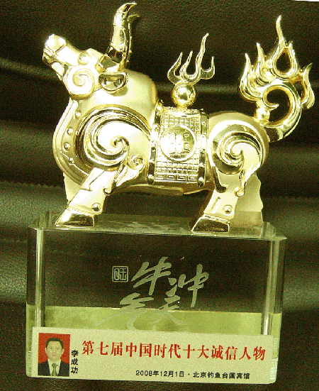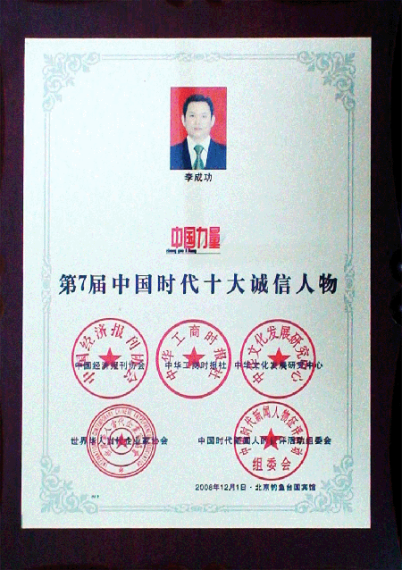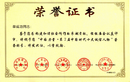 總裁李成功先生當(dāng)選為中國(guó)力量第七屆中國(guó)時(shí)代十大誠(chéng)信人物