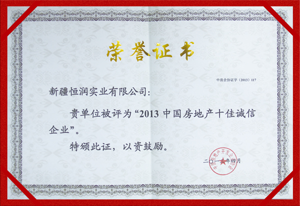 2013中國房地產(chǎn)十佳誠信企業(yè)