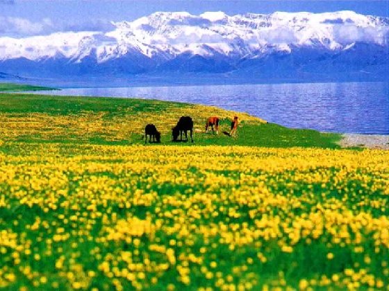 賽里木湖,位于新疆博爾塔拉蒙古自治州境內(nèi)。賽里木湖古稱“乳海”,清代曾在湖的東岸設鄂勒著依圖博木軍臺,即三臺,因此又稱“三臺海子”。它東西長30公里,南北寬27公里,水域面積458平方公里,最深處91米,蓄水總量210億立方米,湖面海拔2073米,是新疆維吾爾自治區(qū)海拔最高、面積最大的高山湖。