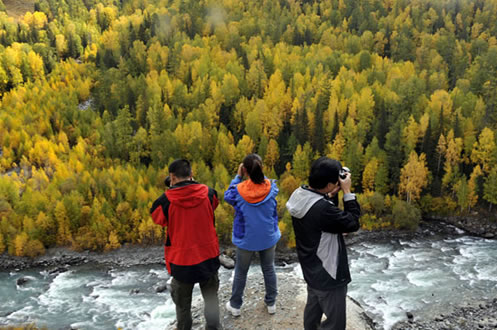 當(dāng)日,第九屆喀納斯金秋國際攝影節(jié)在喀納斯景區(qū)開幕,吸引了800余名中外攝影家和游客前來采風(fēng)、旅游觀光。