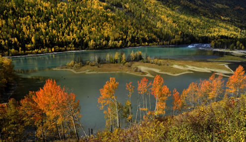 喀納斯臥龍灣景區(qū)秋色(9月15日攝)。