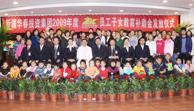 11月1日,華春投資集團(tuán)員工的近百名子女歡天喜地的迎來了一個在首府乃至在全疆絕無僅有的特殊節(jié)日——華春投資集團(tuán)舉辦2009年首批員工子女教育補助金的啟動儀式,當(dāng)天就有84個員工家庭的子女領(lǐng)到了近十萬元教育補助金,其中有一個員工家庭的3個子女同時獲得教育補助金,另一個員工家庭的兩個子女獲得了7000元。