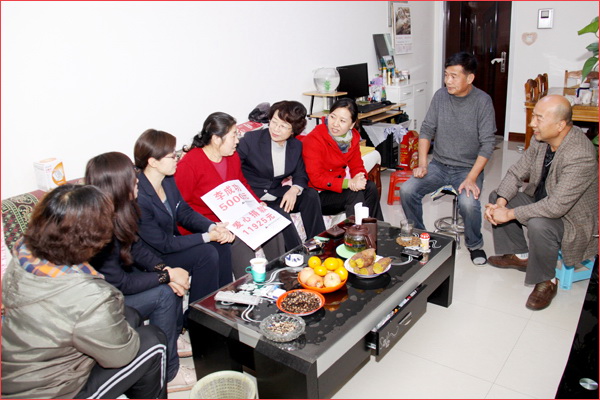 2012年10月17日,盡管季節(jié)已進入瑟瑟寒冷的深秋,但新疆華春投資集團的愛心捐款,為患病員工送去了溫情暖意。新疆華春投資集團工會主席高青與人力資源部、集團子公司華景物業(yè)及編輯部的管理人員一行,代表新疆華春投資集團李成功總裁和華春全員前去親切慰問患病的員工杜菊萍,當(dāng)她接過李成功總裁和華春員工16925元的愛心捐款時,流下感動的淚水。杜菊萍的丈夫激動的一再說:“太感謝華春老總和華春人了,對一個基層員工還這樣的關(guān)心,太感謝、太感謝了!”