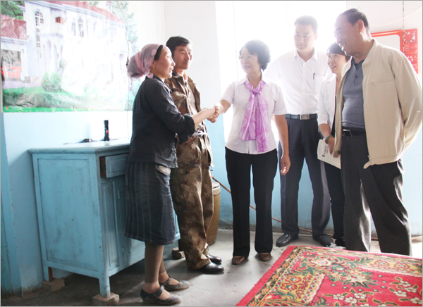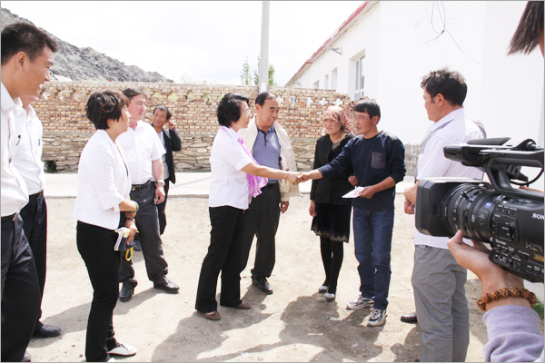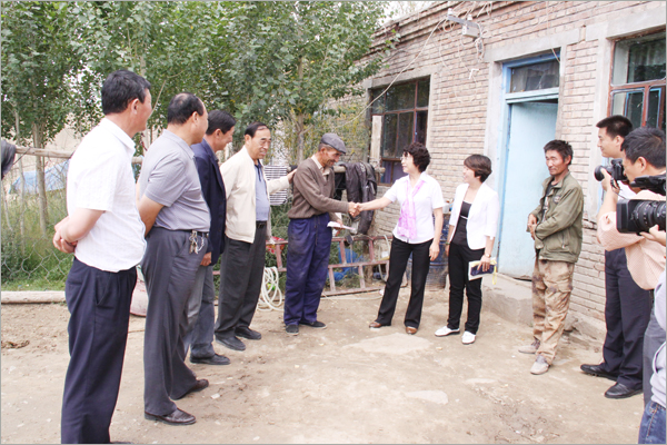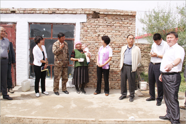華春慰問組與五家渠師市有關(guān)領(lǐng)導(dǎo)在北塔山牧場(chǎng)負(fù)責(zé)人的陪同下,驅(qū)車先后來到下面的各牧業(yè)連隊(duì),慰問那里的困難牧民。那些受到華春資助的困難牧民家庭,當(dāng)接過華春慰問組給他家送來的500元慰問金時(shí),感動(dòng)得一時(shí)不知說什么好。對(duì)于他們素不相識(shí)的華春,卻特地在他們過節(jié)之前,來到他們都極少走出去的山溝,給予他們資金上的幫助。北塔山牧場(chǎng)畜牧二隊(duì)的卡斯木別克•努熱阿合麥提、牧場(chǎng)畜牧一隊(duì)的蘭黑恩•薩納提等牧民,一定要華春慰問組人員留下喝茶,要把過節(jié)的羊宰了招待華春人??吹饺A春慰問組人員謝絕而要離開他們時(shí),緊緊握著華春慰問組人員的手。
