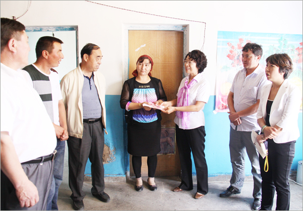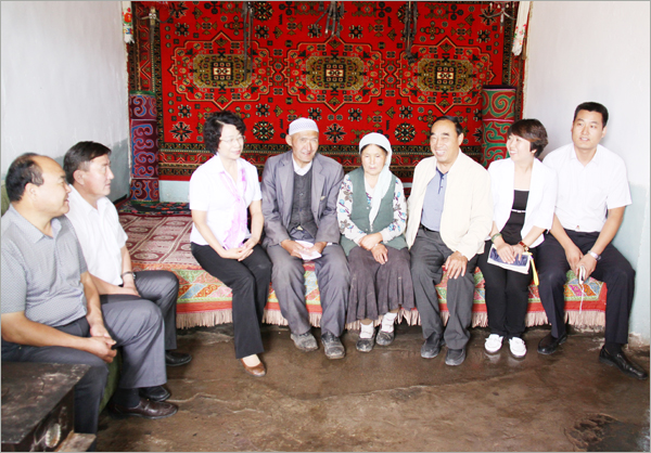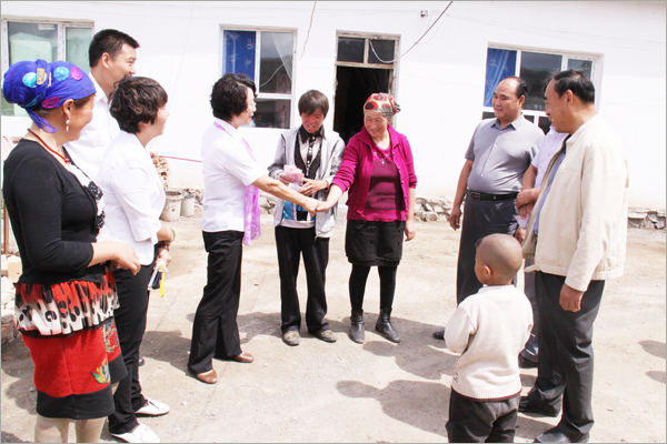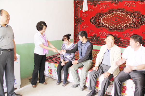 在少數(shù)民族傳統(tǒng)節(jié)日肉孜節(jié)即將到來前的8月4日-5日,為使新疆華春投資集團(tuán)下屬的華春毛紡公司穆斯林員工和五家渠農(nóng)六師少數(shù)民族貧困牧民能夠過上一個(gè)愉快、祥和的節(jié)日,華春集團(tuán)工會(huì)主席高青和集團(tuán)人力資源部部長(zhǎng)胡梅、集團(tuán)下屬的華春毛紡公司總經(jīng)理助理白寶兵及集團(tuán)編網(wǎng)部汪剛等一行4人組成的慰問組,代表李成功總裁和華春全員,與五家渠師市主管經(jīng)濟(jì)和勞動(dòng)就業(yè)的有關(guān)領(lǐng)導(dǎo)一同來到北塔山牧場(chǎng),親切看望了在五家渠華春毛紡工業(yè)園工作的哈薩克族員工的家庭,同時(shí),對(duì)北塔山牧場(chǎng)十多個(gè)困難牧民家庭進(jìn)行了慰問,并為每戶送去500元的慰問金,獻(xiàn)上華春集團(tuán)的一份心意?!?br />