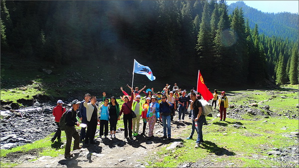 從喧囂的都市來到南山群山中風(fēng)景優(yōu)美的溝谷之一沙溝,這個(gè)位于北天山支脈北麓的山區(qū),集中的展現(xiàn)著大美新疆的妙景。深邃的峽谷,蒼翠欲滴,在重峰疊嶂、唯有山羊才能攀巖上去的危崖聳立之處,一條蜿蜒的山道出其不意在期待著我們的步伐,眼前豁然開闊。在如茵的草坡,山花吐艷。白色的氈房點(diǎn)綴著一派綠色美景,不由得想起一句歌詞:氈房好似珍珠撒。盡管當(dāng)今已難免的染上了一抹市場(chǎng)經(jīng)濟(jì)的色彩,但當(dāng)哈薩克牧民的羊群從我們徒步隊(duì)伍中穿過時(shí),立馬提醒著后人,這個(gè)俊美的山區(qū)從唐代就曾是著名的牧區(qū)狩獵區(qū),霎時(shí)有一種在時(shí)空中穿梭的感覺。