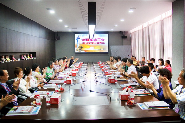 華春集團(tuán)是臺(tái)灣勞動(dòng)人權(quán)協(xié)會(huì)對(duì)新疆進(jìn)行參觀的的典型企業(yè),在華春集團(tuán)下屬的華春毛紡工業(yè)園舉行了座談會(huì),會(huì)議由自治區(qū)統(tǒng)戰(zhàn)部領(lǐng)導(dǎo)主持。會(huì)上,自治區(qū)總工會(huì)領(lǐng)導(dǎo)首先介紹了新疆的概況和自治區(qū)工會(huì)工作的情況。臺(tái)灣勞動(dòng)人權(quán)協(xié)會(huì)會(huì)長、勞動(dòng)黨榮譽(yù)主席羅美文先生介紹了臺(tái)灣勞動(dòng)黨的宗旨和工會(huì)的現(xiàn)狀。