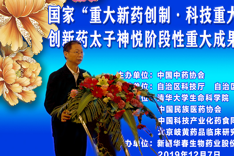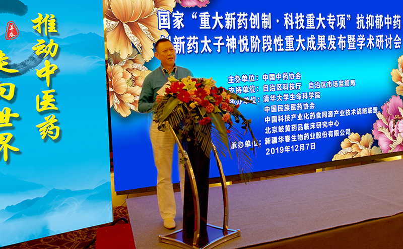 首先,受中國工程院院士、中國中藥協(xié)會黃潞琦會長委托,中國中藥協(xié)會常務(wù)副會長劉張林先生致辭,他說,歷經(jīng)17年的艱辛努力,在國家衛(wèi)計委、科技部、國家藥監(jiān)局、新疆維吾爾自治區(qū)人民政府高度重視與大力支持下,由清華大學(xué)、新疆華春生物藥業(yè)股份有限公司共同研發(fā)的中國原創(chuàng)性抗抑郁中藥創(chuàng)新藥太子神悅順利完成三期臨床研究總結(jié),結(jié)果顯示,太子神悅膠囊的有效率為75.14%,與經(jīng)典化學(xué)藥氟西汀相當(dāng),而在安全性以及癥候改善方面太子神悅具有明顯優(yōu)勢,充分體現(xiàn)了中醫(yī)藥在精神神經(jīng)疾病領(lǐng)域的特色與生命力。能夠取得如此成果,真是可喜可賀!抑郁癥已經(jīng)成為全球致殘率第一的重大疾患,并已超過心腦血管病成為全球第二大疾病。太子神悅階段性重大成果是落實習(xí)近平總書記關(guān)于“守正創(chuàng)新”發(fā)展中醫(yī)藥事業(yè)重要指示的代表性進展,填補了中國抗抑郁中藥原創(chuàng)性新藥創(chuàng)制的空白,必將對新疆中醫(yī)藥產(chǎn)業(yè)以及區(qū)域優(yōu)勢中藥材種植業(yè)的快速發(fā)展產(chǎn)生重大影響,同時對于推動中醫(yī)藥現(xiàn)代化也將具有里程碑意義!