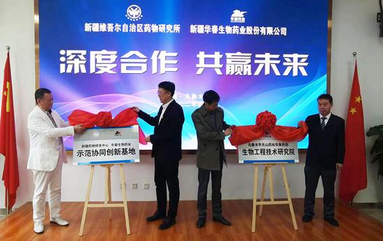 當日,雙方還為合作組建的新疆藥物研發(fā)中心華春生物藥業(yè)示范協(xié)同創(chuàng)新基地、烏魯木齊天山藥谷華春西部生物工程技術(shù)研究院舉行了揭牌。