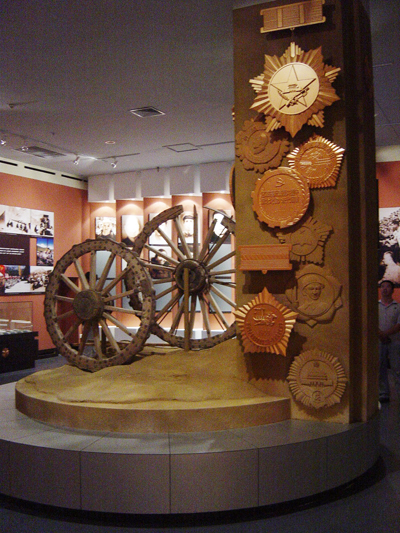 最令人感動(dòng)的是在大型穹幕展廳,逼真的展示著軍墾戰(zhàn)士在那西北邊陲天蒼蒼、野茫茫的亙古荒原,以其革命的樂觀主義精神戰(zhàn)天斗地的墾荒史,在他們手中奇跡般的將戈壁荒灘變成一個(gè)現(xiàn)代化的園林城市。軍墾精神,彪炳史冊!