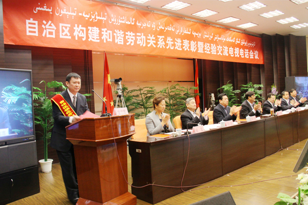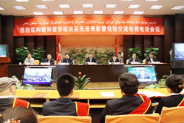 自治區(qū)構(gòu)建和諧勞動關(guān)系先進表彰暨經(jīng)驗交流電視電話會議出席的領(lǐng)導(dǎo)