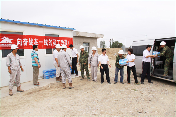 關(guān)愛員工,是華春企業(yè)文化的精髓。入夏天氣持續(xù)高溫,炎熱異常,但五家渠華春毛紡工業(yè)園項(xiàng)目建設(shè)工地的員工們,頂烈日、戰(zhàn)酷暑,堅守在崗位。華春集團(tuán)心系一線員工,自6月下旬以來,集團(tuán)行政辦與有關(guān)子公司管理層都前去慰問。中國關(guān)愛員工優(yōu)秀民營企業(yè)家李成功總裁,還特地于端午節(jié)親臨工地現(xiàn)場,親切看望慰問了員工與施工單位的工作人員。華春集團(tuán)與總裁李成功先生的關(guān)心,極大的鼓舞著一線員工的工作熱情,大家決心要以實(shí)際行動發(fā)揚(yáng)工人階級頑強(qiáng)拼搏的精神,有序推進(jìn)工程建設(shè),為華春毛紡工業(yè)園項(xiàng)目早日建成做出貢獻(xiàn)。