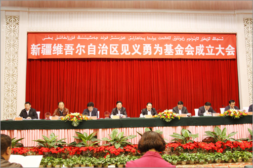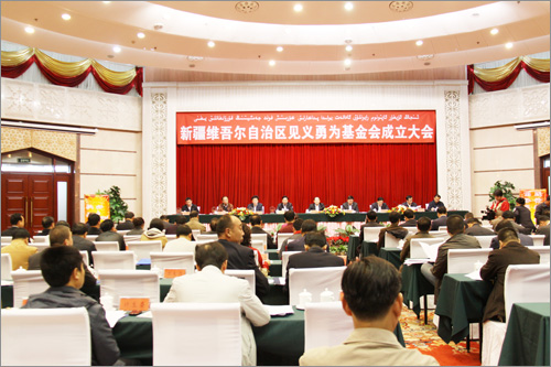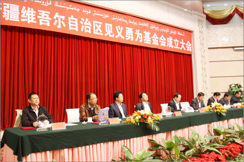 自治區(qū)黨委、政府高度重視見義勇為基金會(huì)的成立,自治區(qū)主席努爾•白克力為基金會(huì)名譽(yù)會(huì)長(zhǎng),自治區(qū)黨委常委、政法委書記熊選國(guó)和自治區(qū)副主席、公安廳廳長(zhǎng)朱昌杰為基金會(huì)名譽(yù)副會(huì)長(zhǎng),原自治區(qū)人大常委會(huì)副主任張國(guó)梁擔(dān)任基金會(huì)理事長(zhǎng)。自治區(qū)黨政各部門領(lǐng)導(dǎo)參加了大會(huì),會(huì)議由自治區(qū)黨委副秘書長(zhǎng)、政法委常務(wù)副書記郭永輝主持。