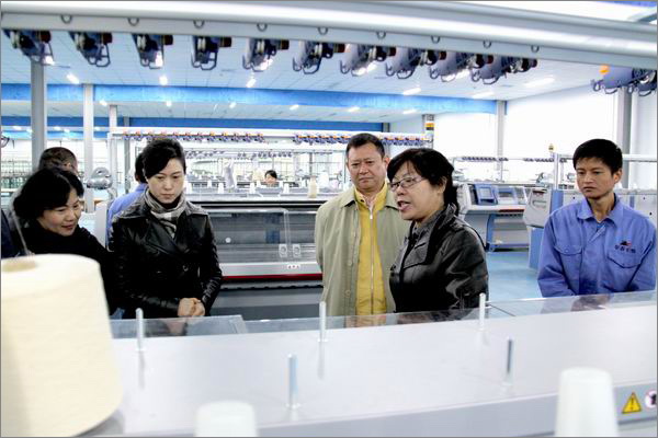 李總裁帶領(lǐng)管理人員參觀梳紡車間