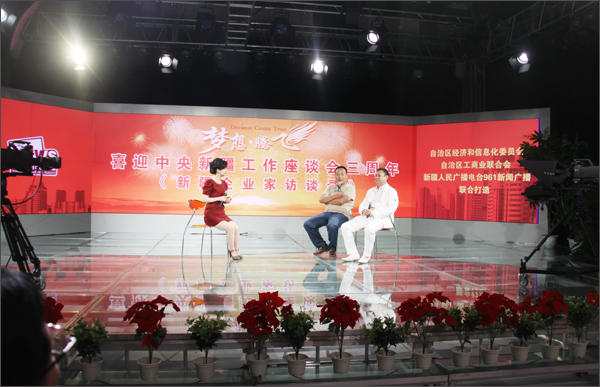 在中央新疆工作座談會(huì)三周年到來(lái)之際的5月17日,新疆華春投資集團(tuán)李成功總裁做客由新疆人民廣播電臺(tái)新聞廣播聯(lián)合自治區(qū)經(jīng)信委、自治區(qū)工商業(yè)聯(lián)合會(huì)舉行的“夢(mèng)想騰飛·喜迎中央新疆工作座談會(huì)三周年新疆企業(yè)家訪談錄” 直播現(xiàn)場(chǎng),為80位企業(yè)家代表解讀了企業(yè)在新疆發(fā)展中面臨的機(jī)遇和前景、夢(mèng)想。
