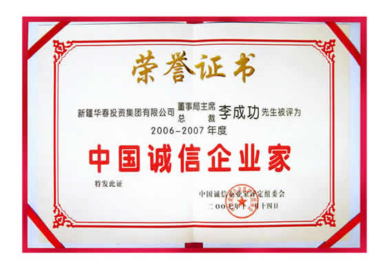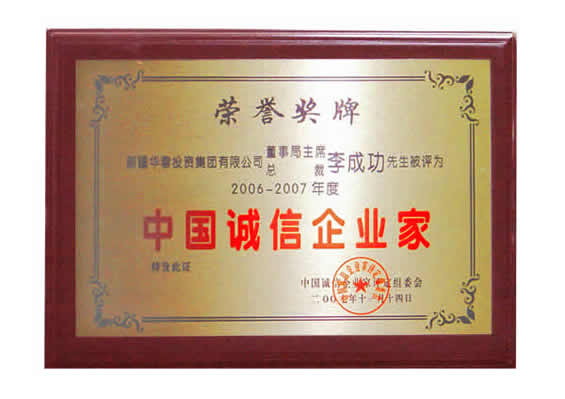 “06-07年度中國誠信企業(yè)家”榮譽證書