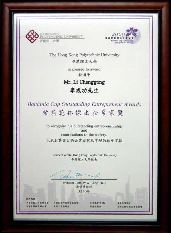 “2009中國(guó)十大誠(chéng)信企業(yè)家”榮譽(yù)證書